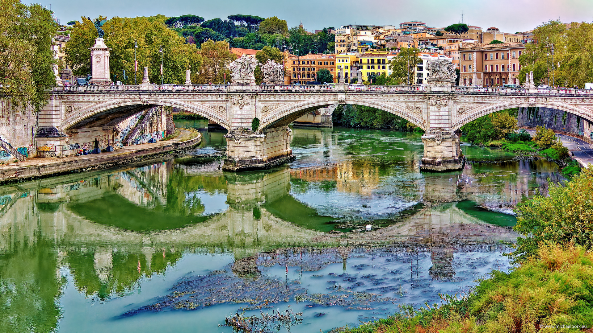 | Page 3/10 | Der Tiber war auch ein wichtiger Bestandteil der römischen Kultur und Mythologie. Der Legende nach beginnt hier die Geschichte Roms, als der Korb, in den Romulus und Remus gelegt worden waren, am Ufer des Tibers hängen blieb. Der Fluss umarmte sie und beschützte sie bis zur Ankunft der Wölfin, dem tierischen Symbol Roms, die sie rettete und zu Tode pflegte. Im Jahr 753 v. Chr. gründete Romulus Rom. |