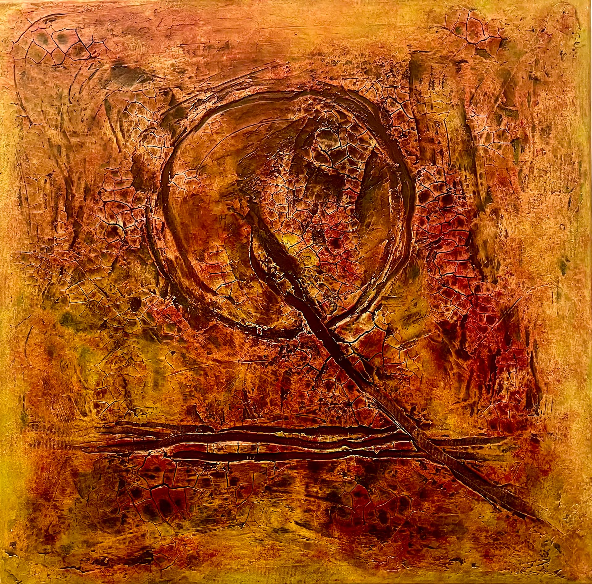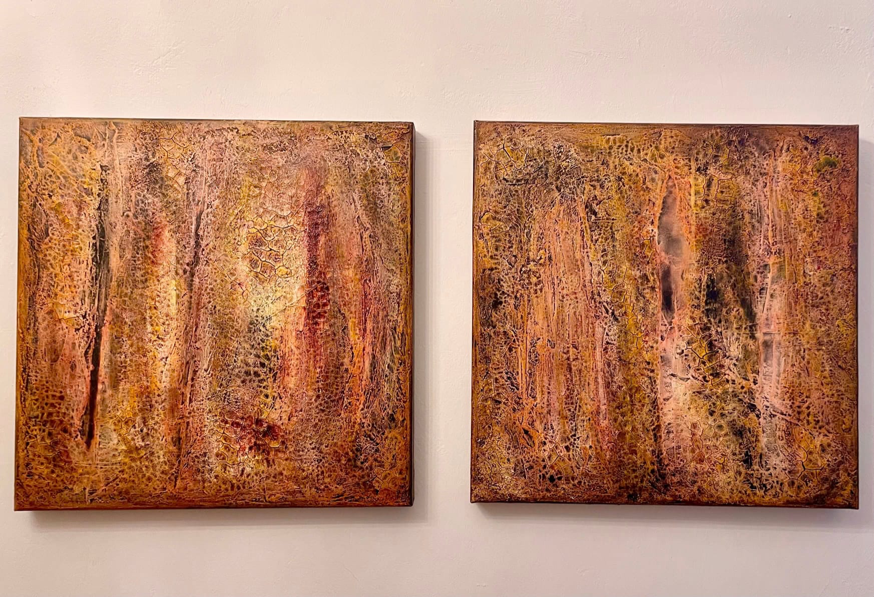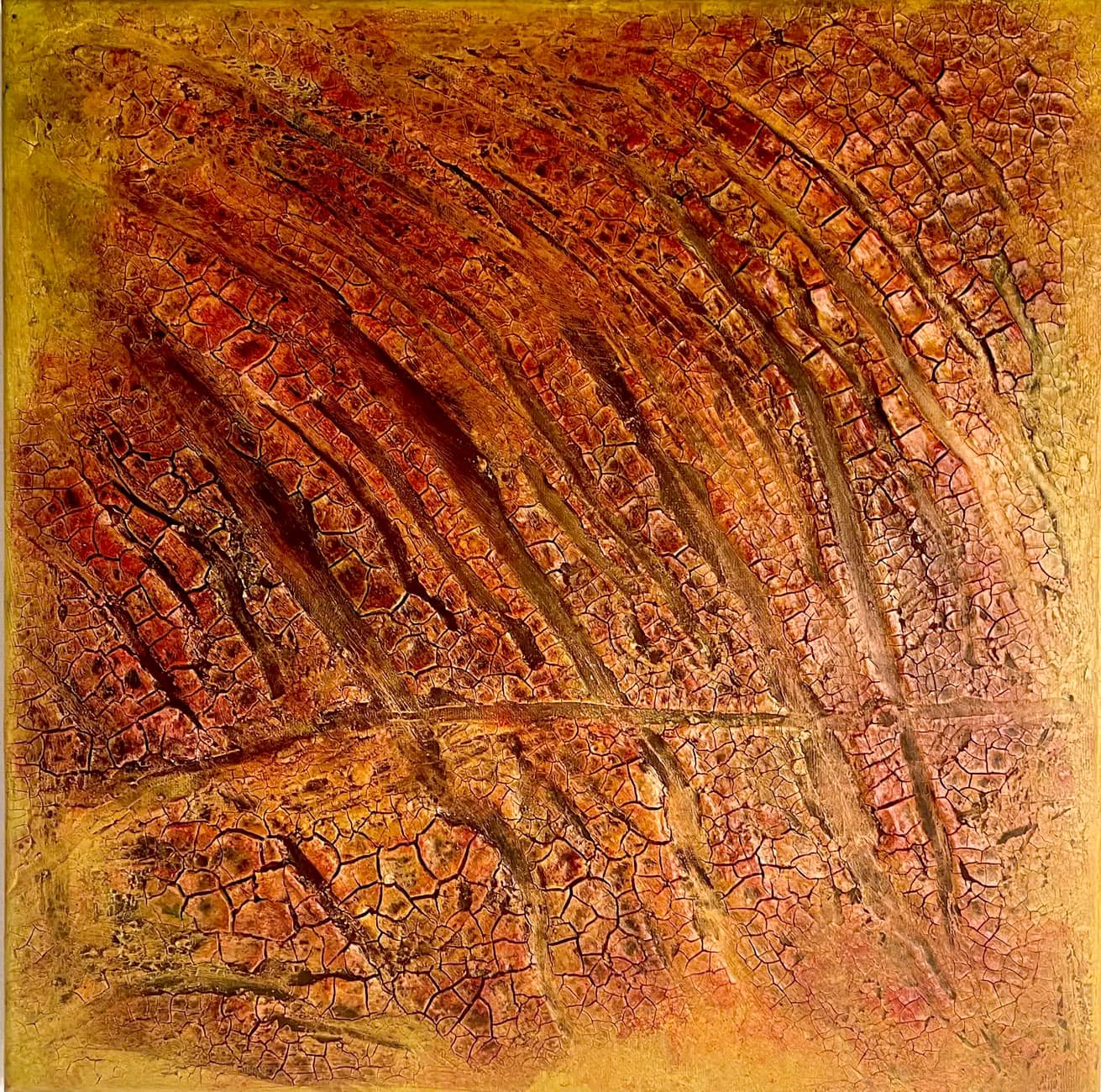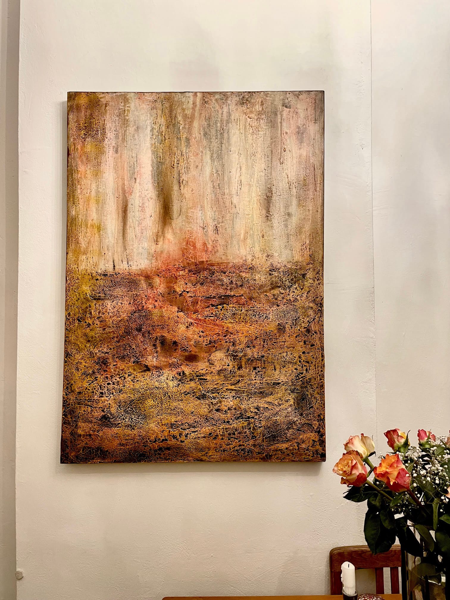 - Schichtweise aufgetragene Farben erzeugen eine lebendige, organische Oberfläche