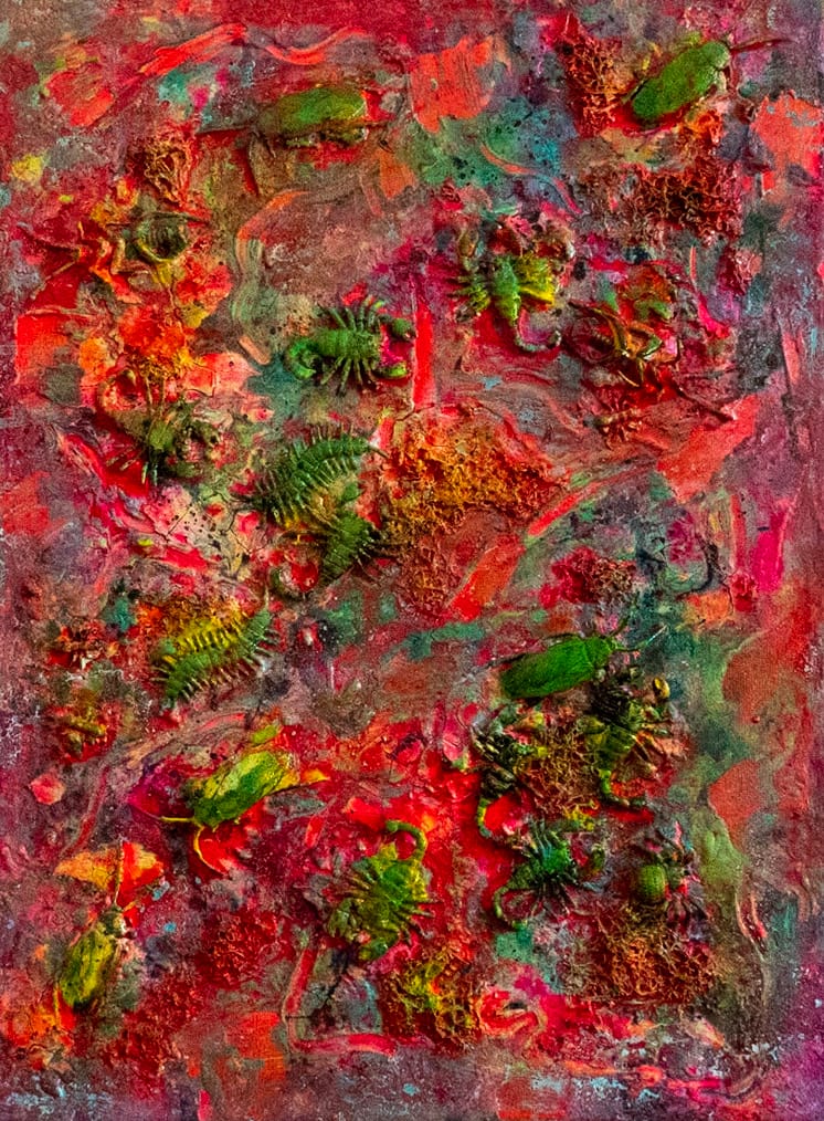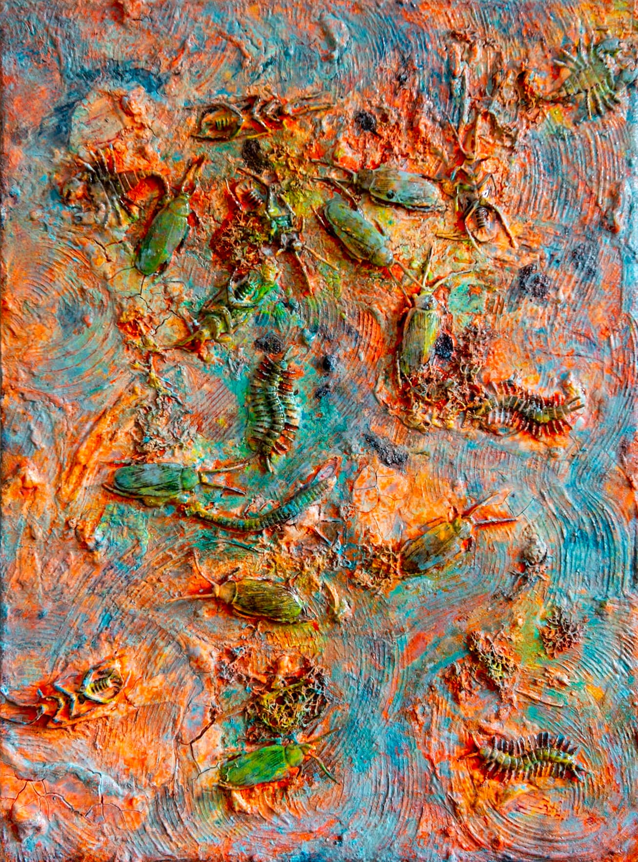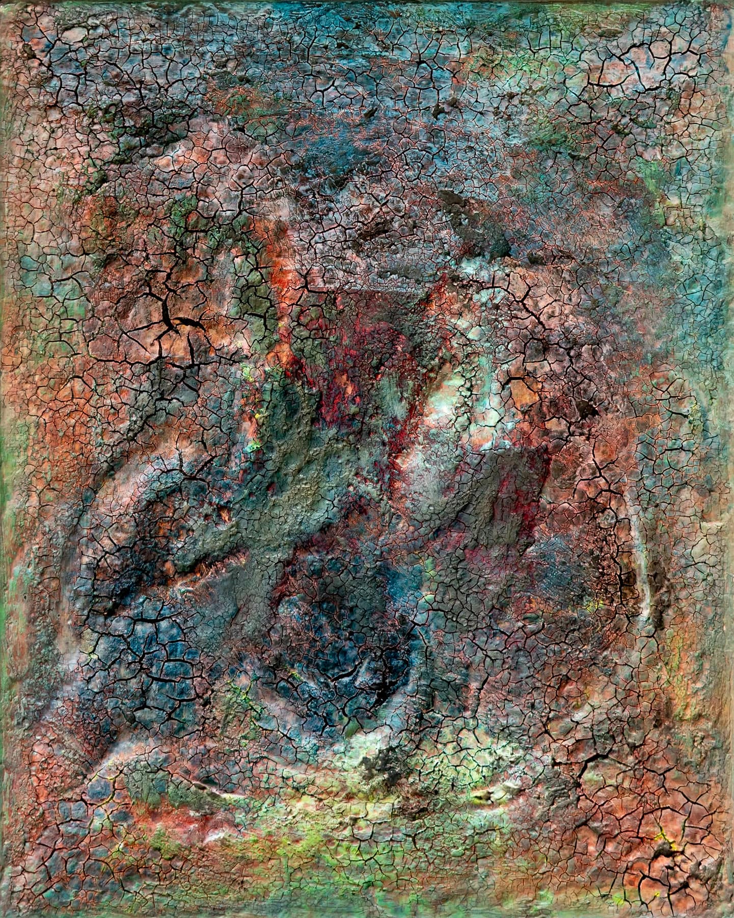 - Schichtweise aufgetragene Farben erzeugen eine lebendige, organische Oberfläche