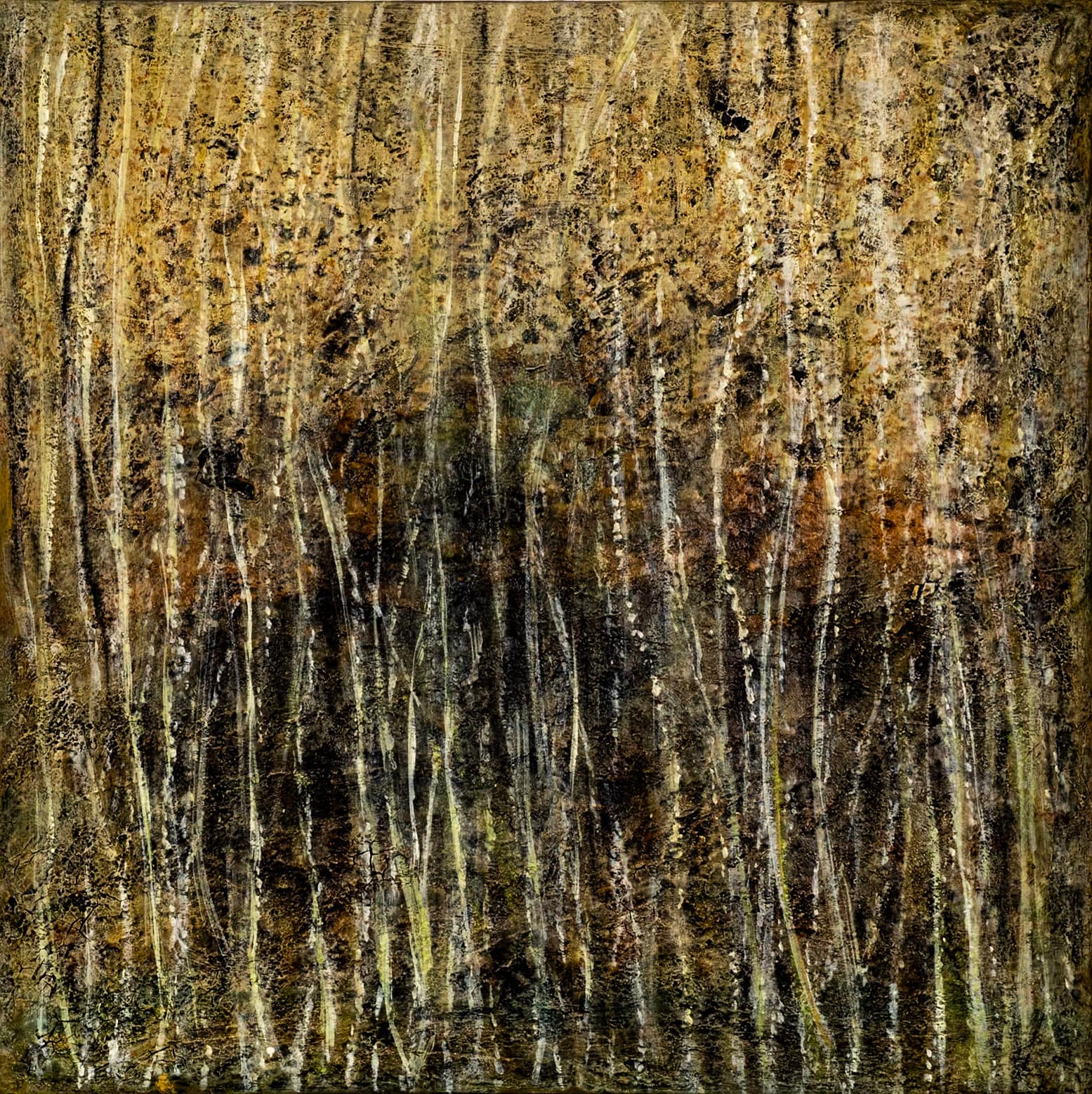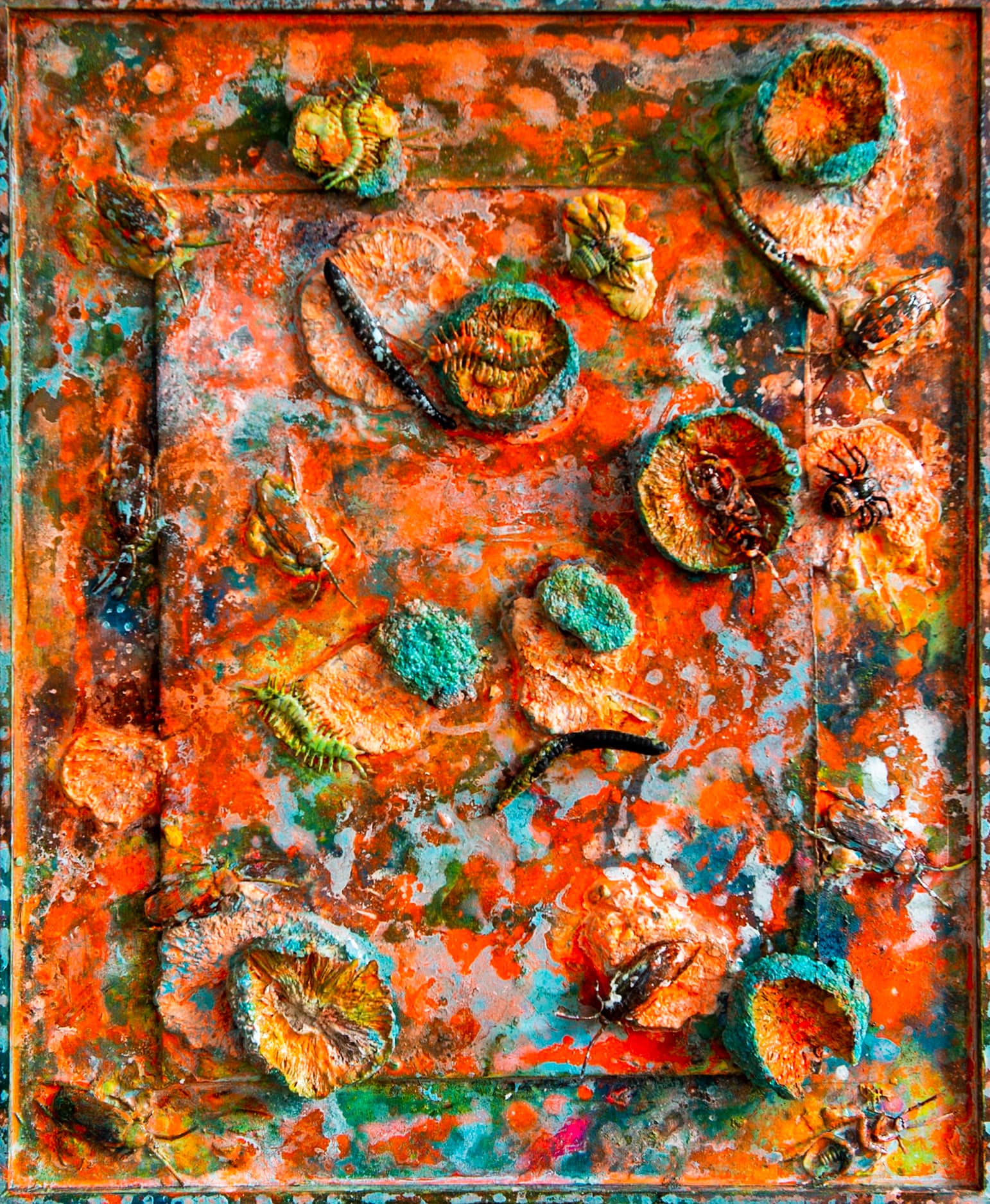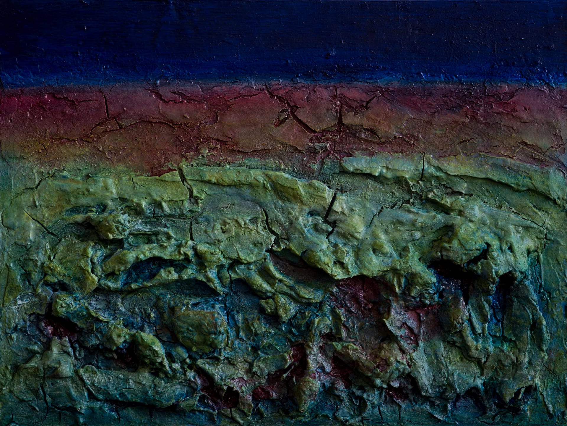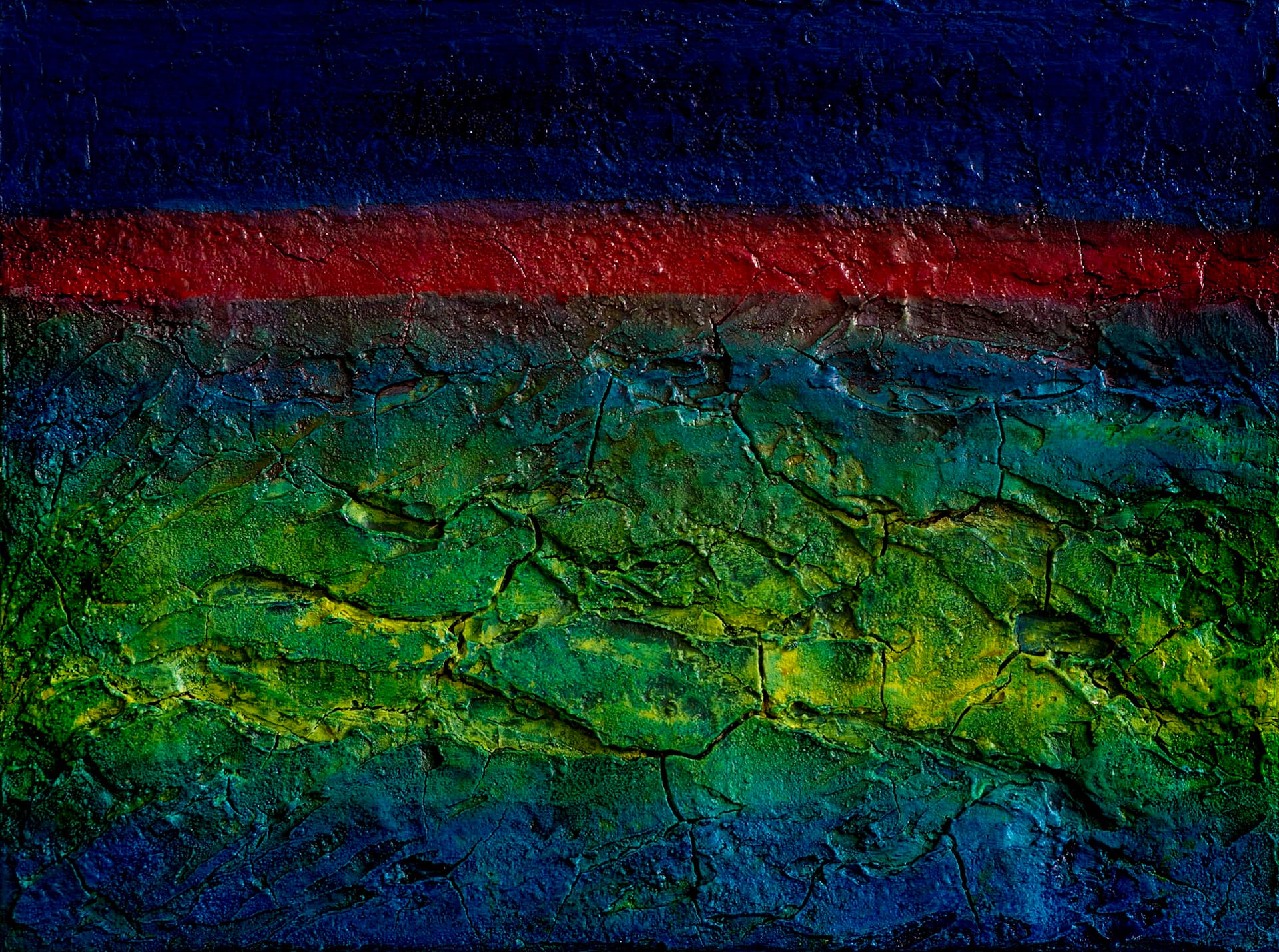 - Schichtweise aufgetragene Farben erzeugen eine lebendige, organische Oberfläche